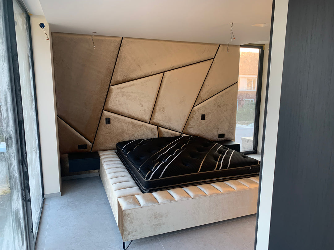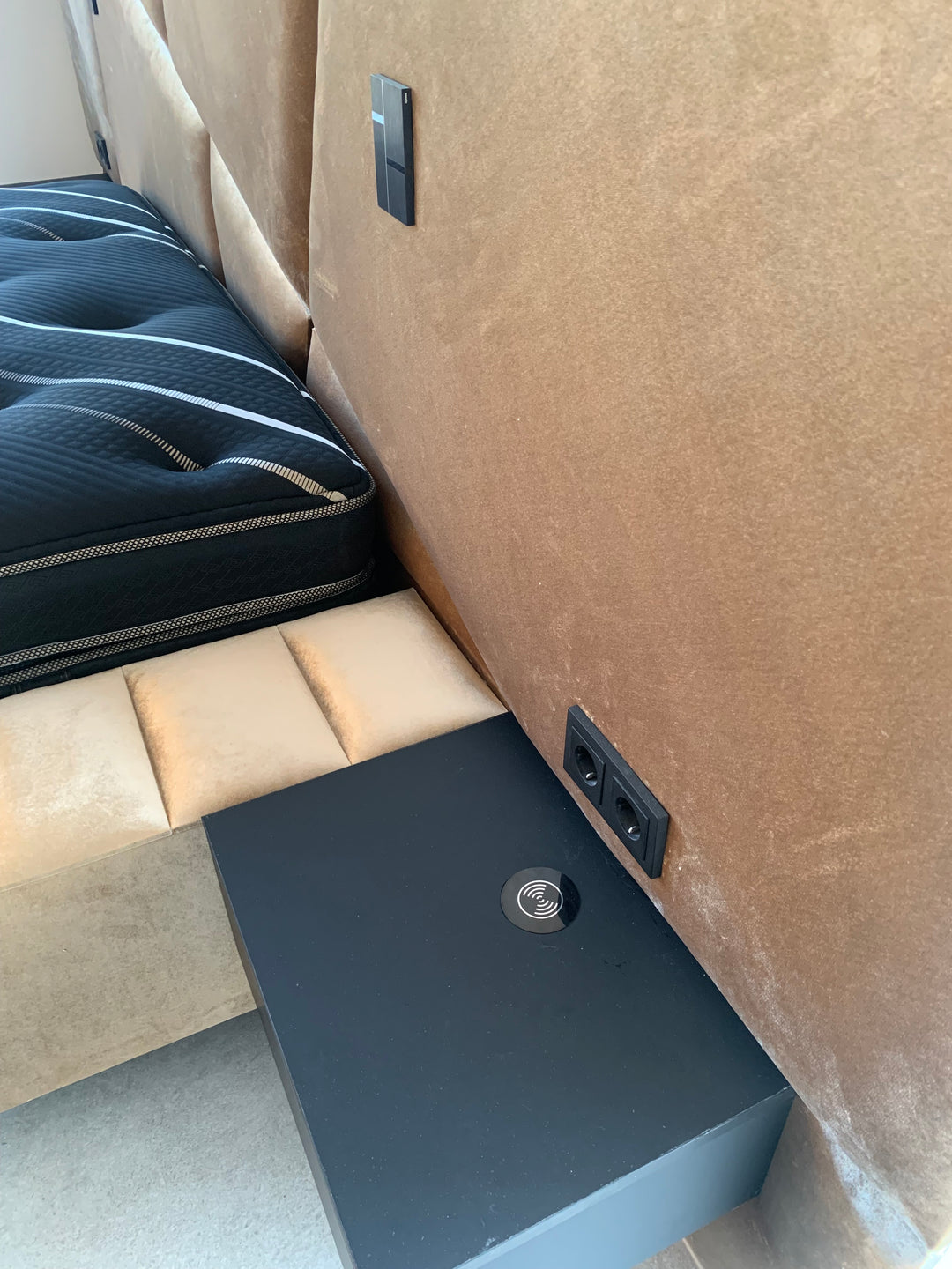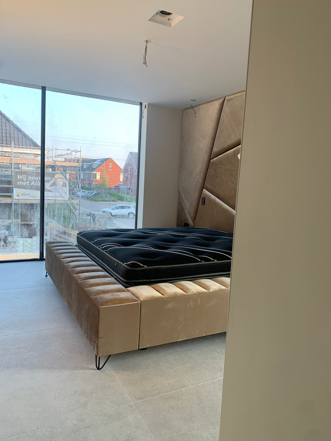 In Villa Dordrecht hebben we een exclusief project afgerond door een op maat gemaakt continental hoofdbord met bedombouw te plaatsen. Dit gepersonaliseerde hoofdbord voegt een vleugje luxe toe aan de slaapkamer. Met een luxe hotelmatras Beautyrest, bieden we comfort van topkwaliteit voor een goede nachtrust. Bovendien hebben we nachtkasten geïnstalleerd met handige oplaadfuncties, waardoor functionaliteit en stijl samenkomen in deze elegante slaapruimte.