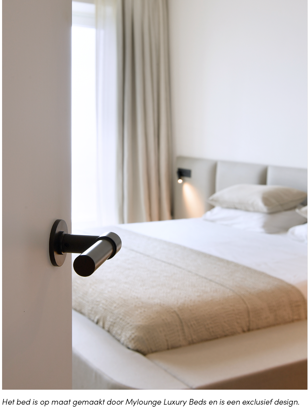 Het heerlijke custom made bed werd ontworpen door Sanne Kurvers en gerealiseerd door Mylounge Luxury Beds.